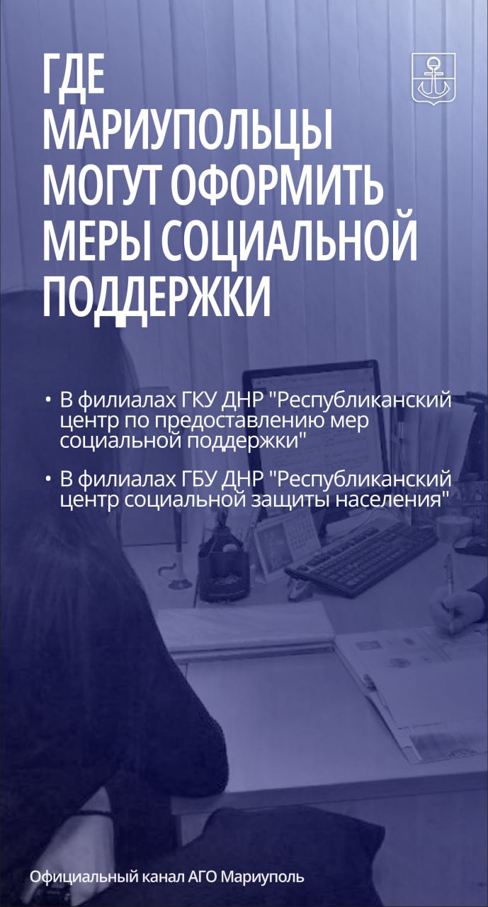 За получением мер социальной поддержки мариупольцы могут обращаться в филиалы республиканских центров, расположенные во всех районах города.
