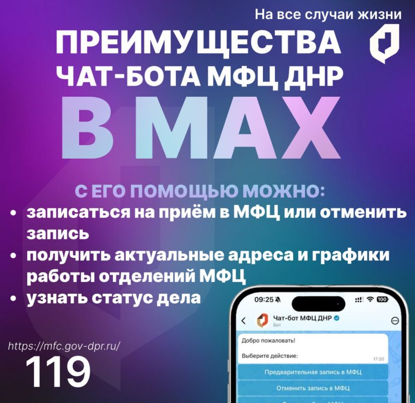 Чат-бот МФЦ ДНР в мессенджере MAX - быстро, удобно, рядом.