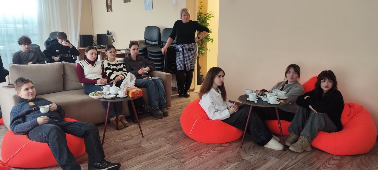 Завершилось мероприятие тепло и душевно, ребята пили чай со сладкими угощениями и смотрели мультфильм "Князь Владимир".