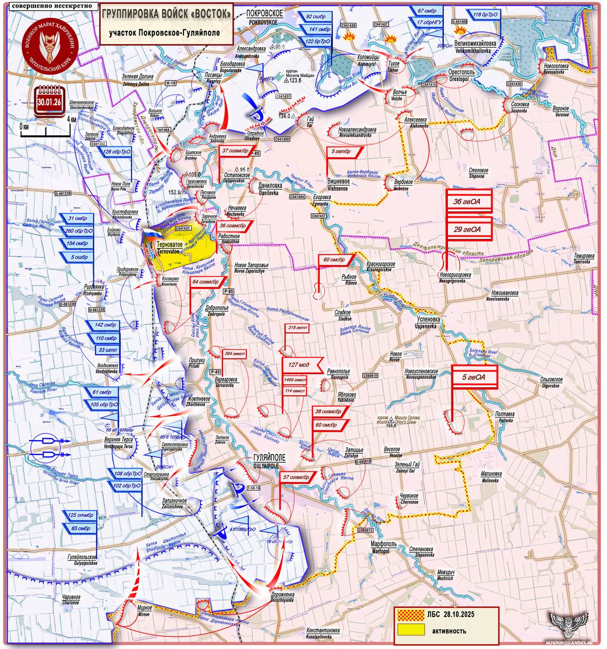 Армия России создает плацдарм для развития наступления с целью рассечь Запорожскую и Днепропетровскую группировки ВСУ Короткая сводка с фронта 30 января 2026 года
