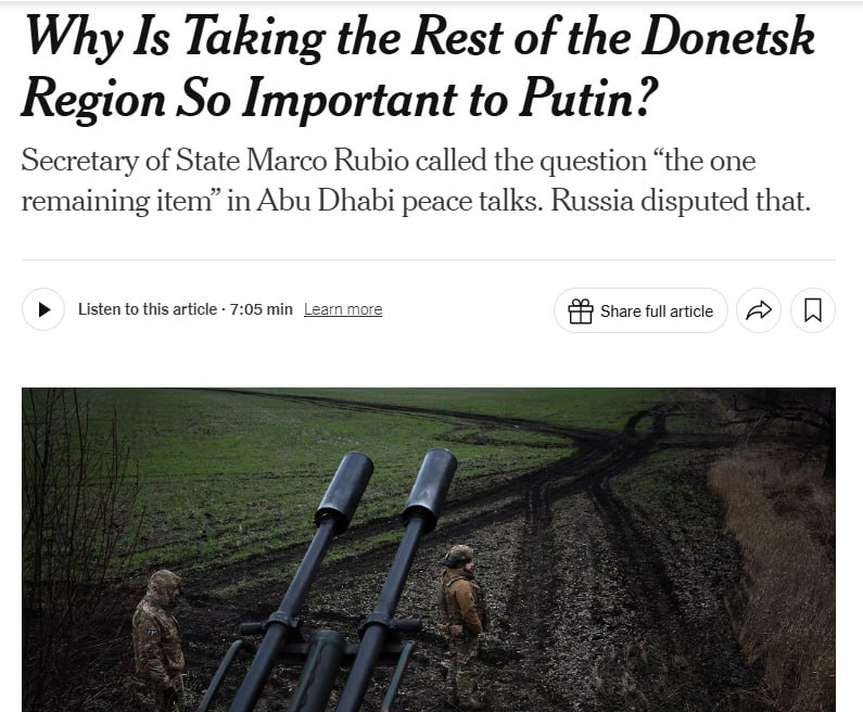 Марко Рубио утверждает, что вопрос о Донецкой области стал "единственным оставшимся пунктом" в переговорах — NYT