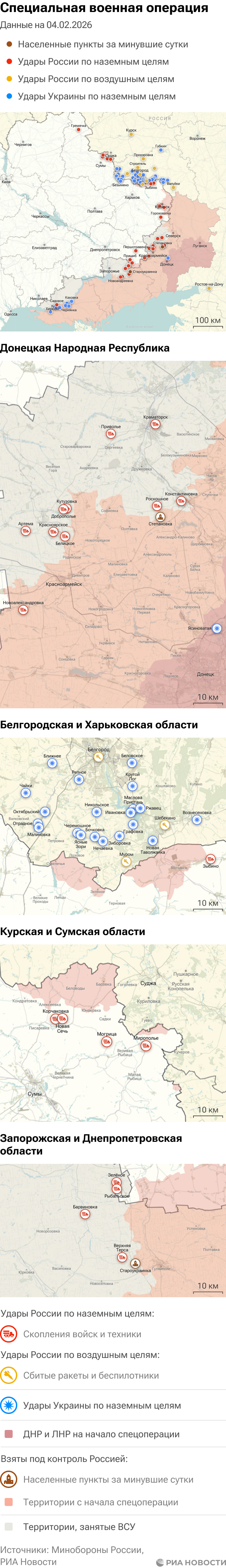 Российская армия с 24 февраля 2022 года проводит на Украине специальную военную операцию. Ее главной целью является помощь Донецкой и Луганской народным республикам, на территории которых с 2014 года не прекращались обстрелы. Перед российскими военными поставлена задача минимизировать потери личного состава и мирного населения при выполнении боевых заданий.Данные Минобороны и администраций новых регионов на 4 февраля 2026 года