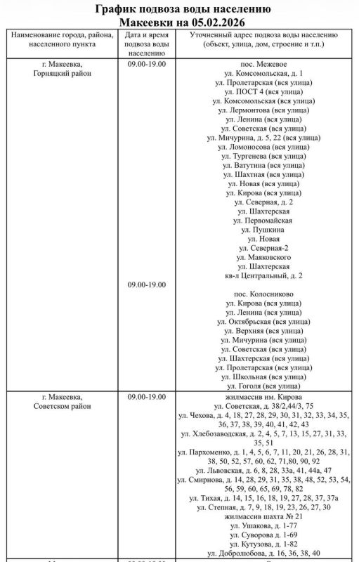 Сегодня, 5 февраля, в Макеевке будет организован подвоз воды для жителей, в дома которых не поступила вода в установленный графиком день.