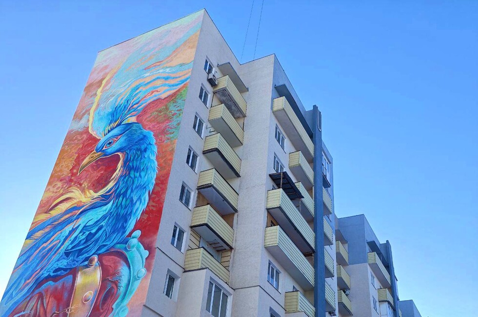 Финальным штрихом стал мурал — фасад украсили яркими птицами.