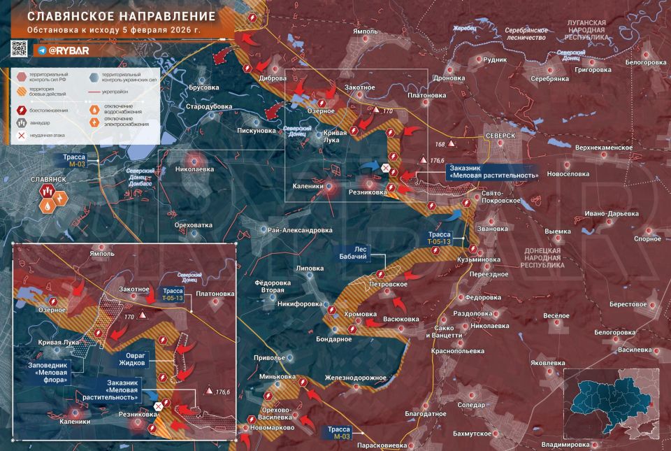 Со Славянского направления вновь поступают сообщения о продвижении российских войск на северном участке. ВСУ продолжают терять позиции на обоих берегах Северского Донца.