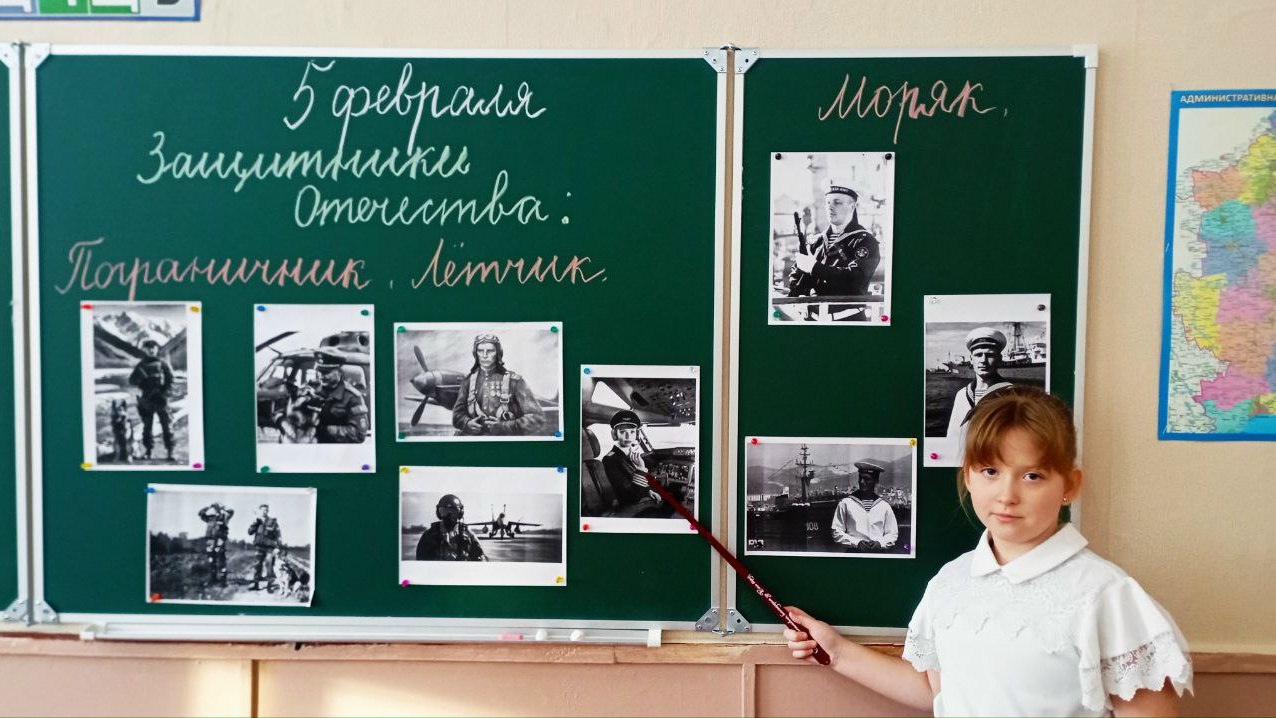 Ребята познакомились с такими профессиями, как пограничник, лётчик и моряк. В ходе беседы школьники обсуждали понятия «Родина» и «защитник», а также выделяли качества, которыми должен обладать человек, защищающий свою страну.