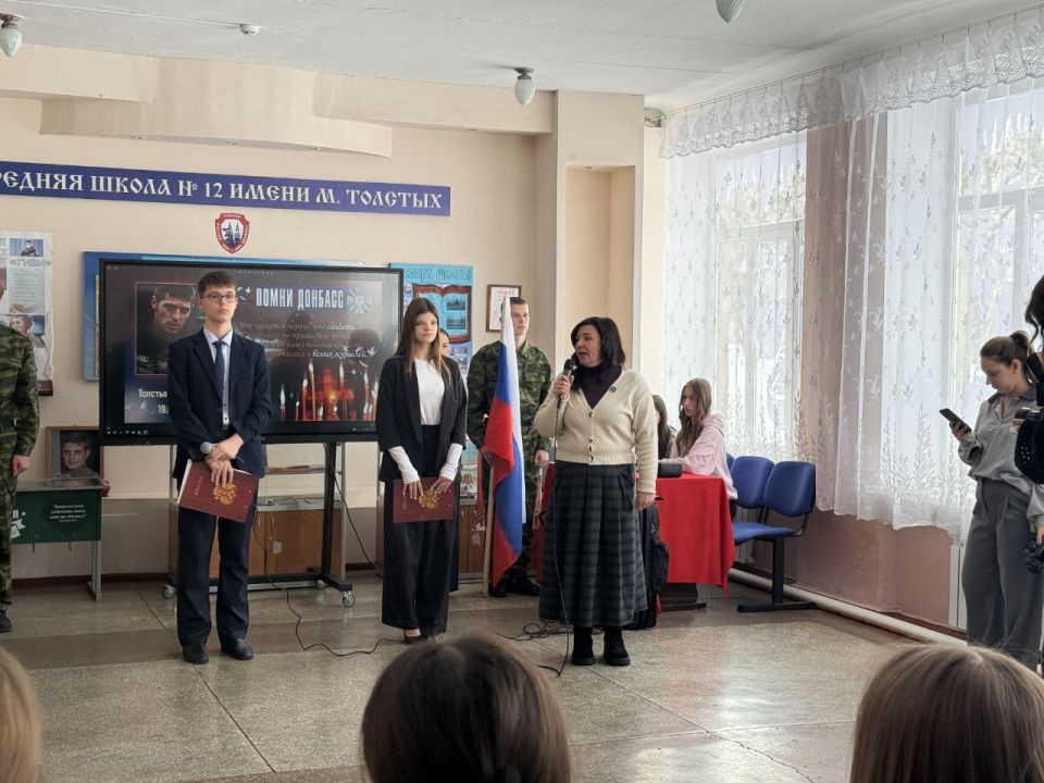 На нашем мероприятии присутствовали и гости: мать "Гиви" Толстых Нина Михайловна, заместитель главы администрации городского округа Иловайск Дорошилова Елена Владимировна, директор музея городского округа Иловайск Бушуева Надежда Анатольевна, а также бойцы подразделения, где служил "Гиви", региональное отделение "Движение первых".