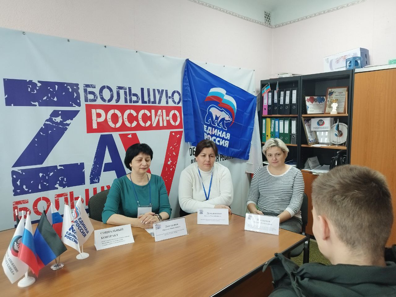 Прием провели представители СФР, Филиала №28 ГКУ ДНР «РЦПМСП» Тельмановского муниципального округа и ОСЗН №28-Филиала ГБУ ДНР «РЦСЗН».