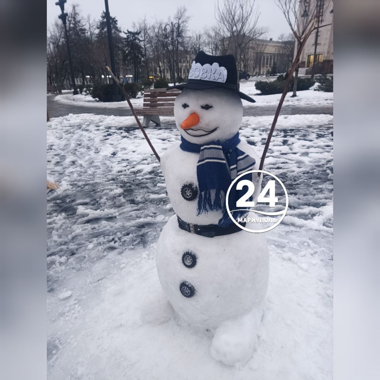 Модный снеговик Вовка появился возле здания драмтеатра в Мариуполе