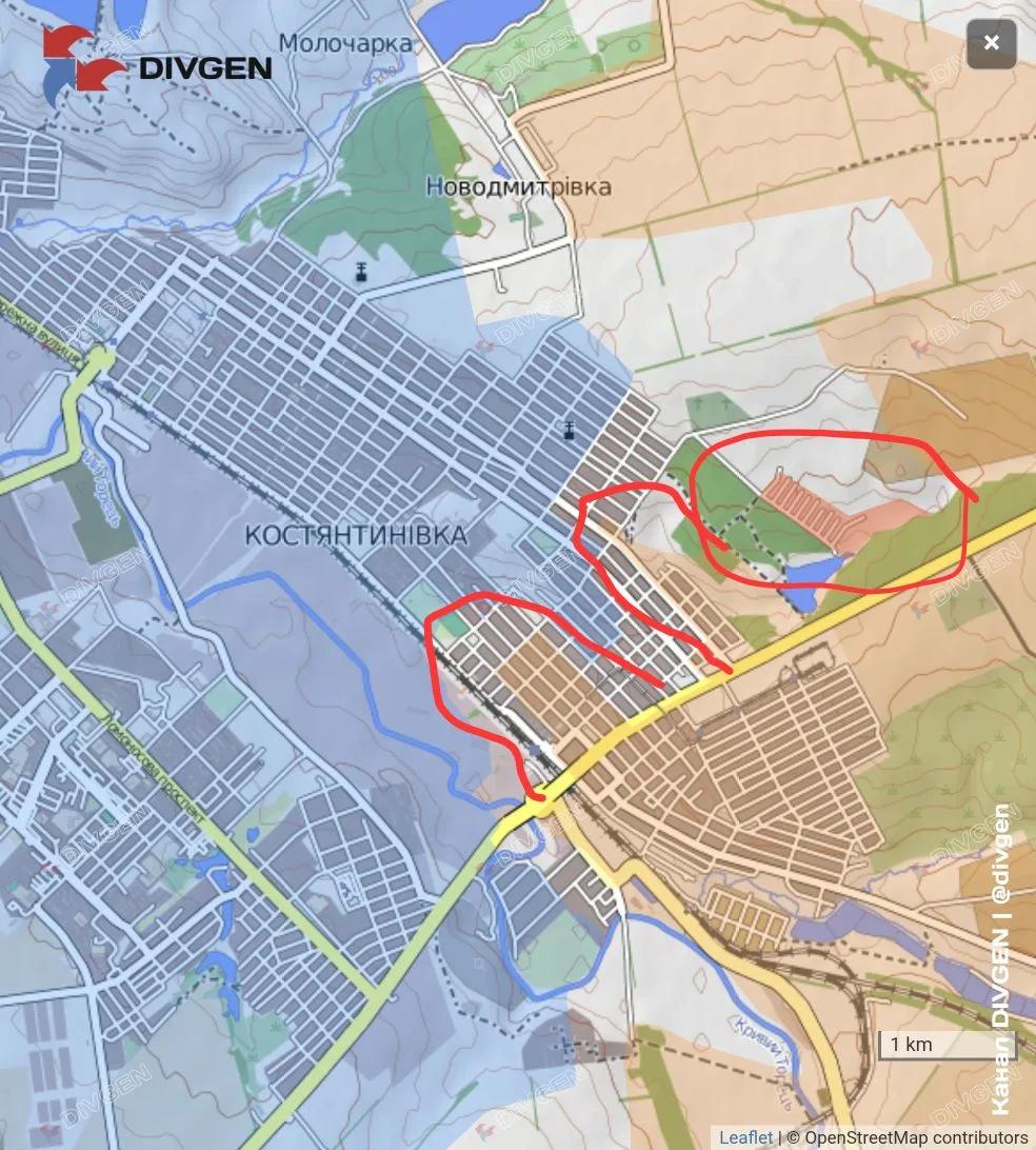 Одновременно в Константиновке продвигаются вглубь города, заняв ещё и садовый кооператив "Химик".