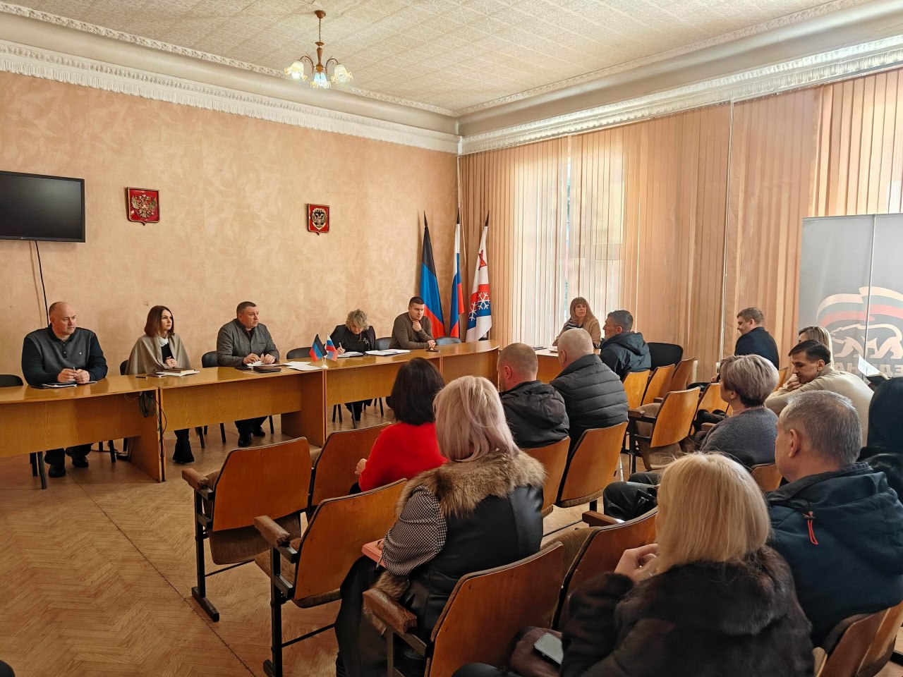 На совещании рассмотрены вопросы школьного питания, текущей деятельности коммунальных служб, учета поголовья скота, а также прибытия бригады узкопрофильных врачей из Самарской области.