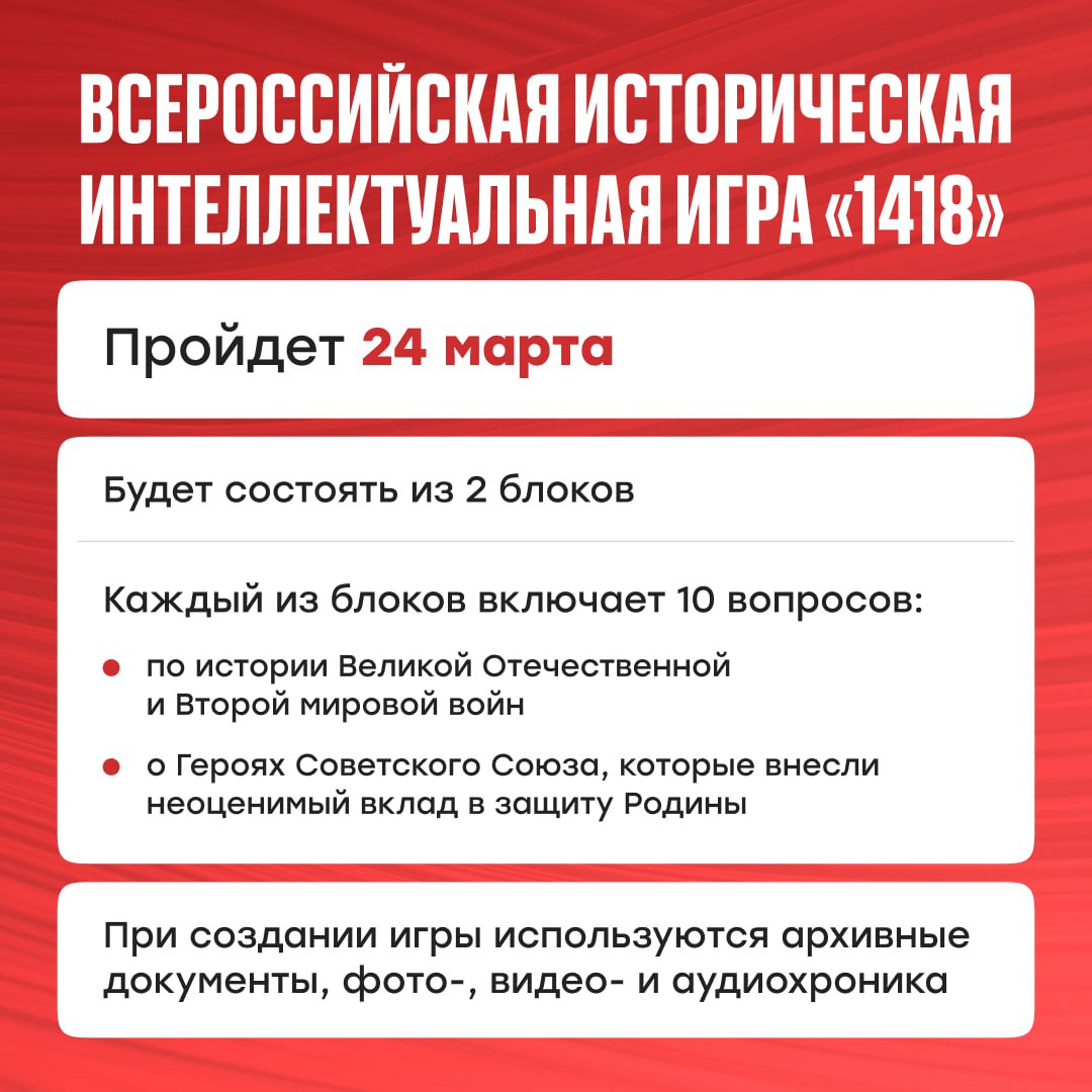 Зарегистрироваться на игру и узнать подробности можно на сайте игра-1418.рф.