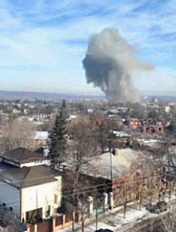 На местах прилётов поднимается дым.