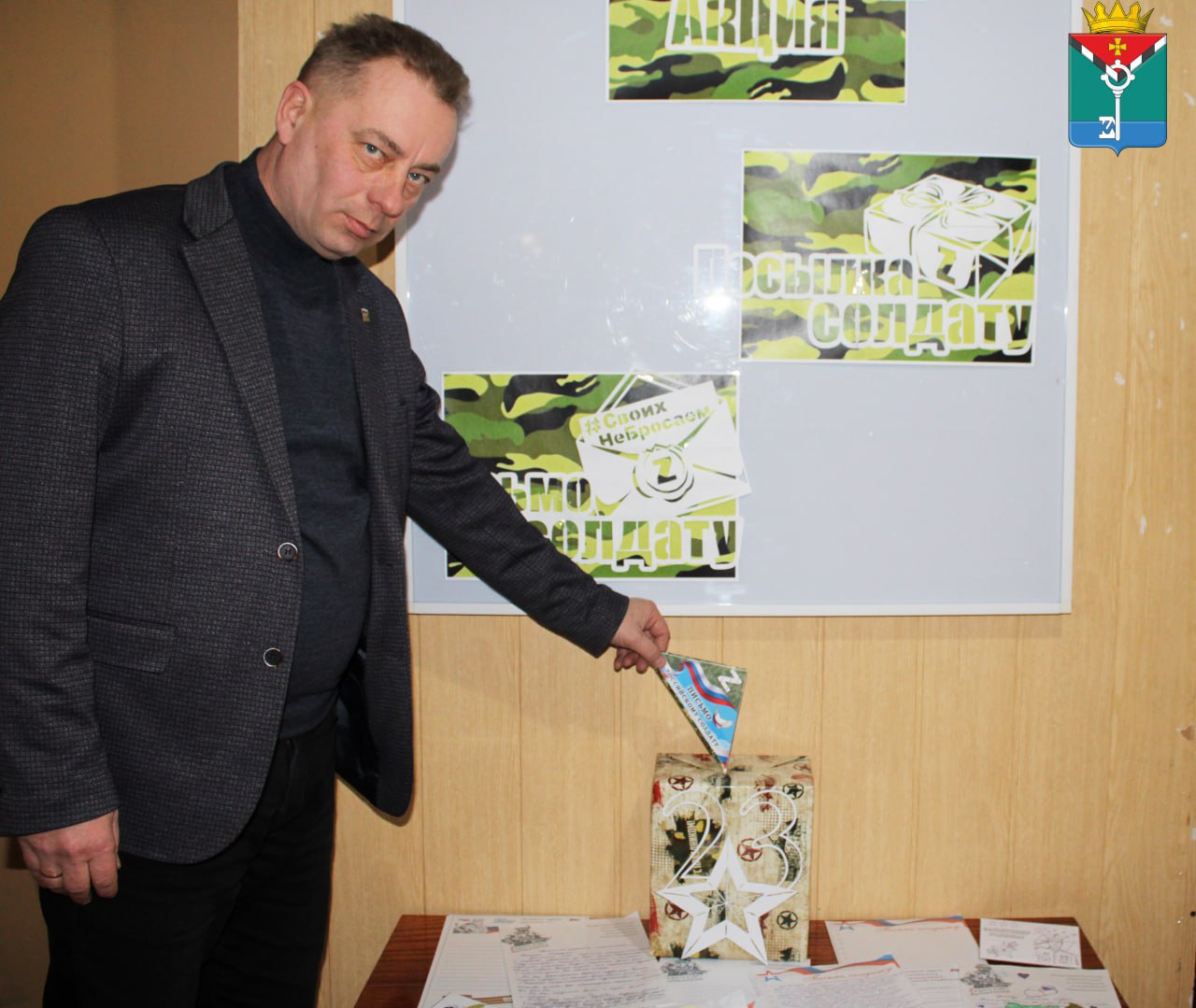 В Администрации округа размещен ящик «Полевой почты». Все желающие могут принести письма, рисунки, открытки и поделки, адресованные военнослужащим.