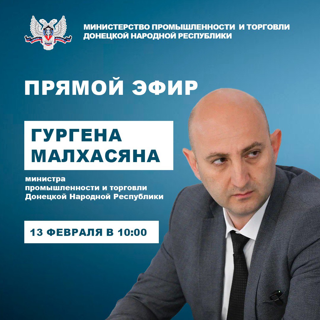 В пятницу, 13 февраля, в 10:00, по поручению Главы ДНР проведу прямой эфир, в ходе которого отвечу на вопросы граждан Республики в сфере промышленности и торговли.