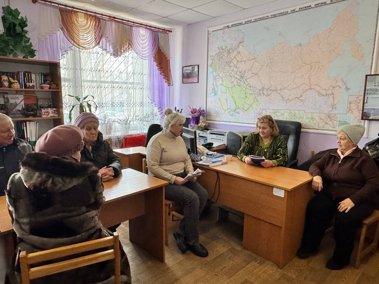 Сегодня заместитель председателя Общественного совета, начальник железнодорожного вокзала ст. Иловайск - Анна Юрьевна Бардина провела встречу с коллективом Совета ветеранов войны и труда г.о. Иловайск. На встрече обсудили вопрос, волнующий всех жителей города – возобновление железнодорожного узла Иловайск - Ростов.