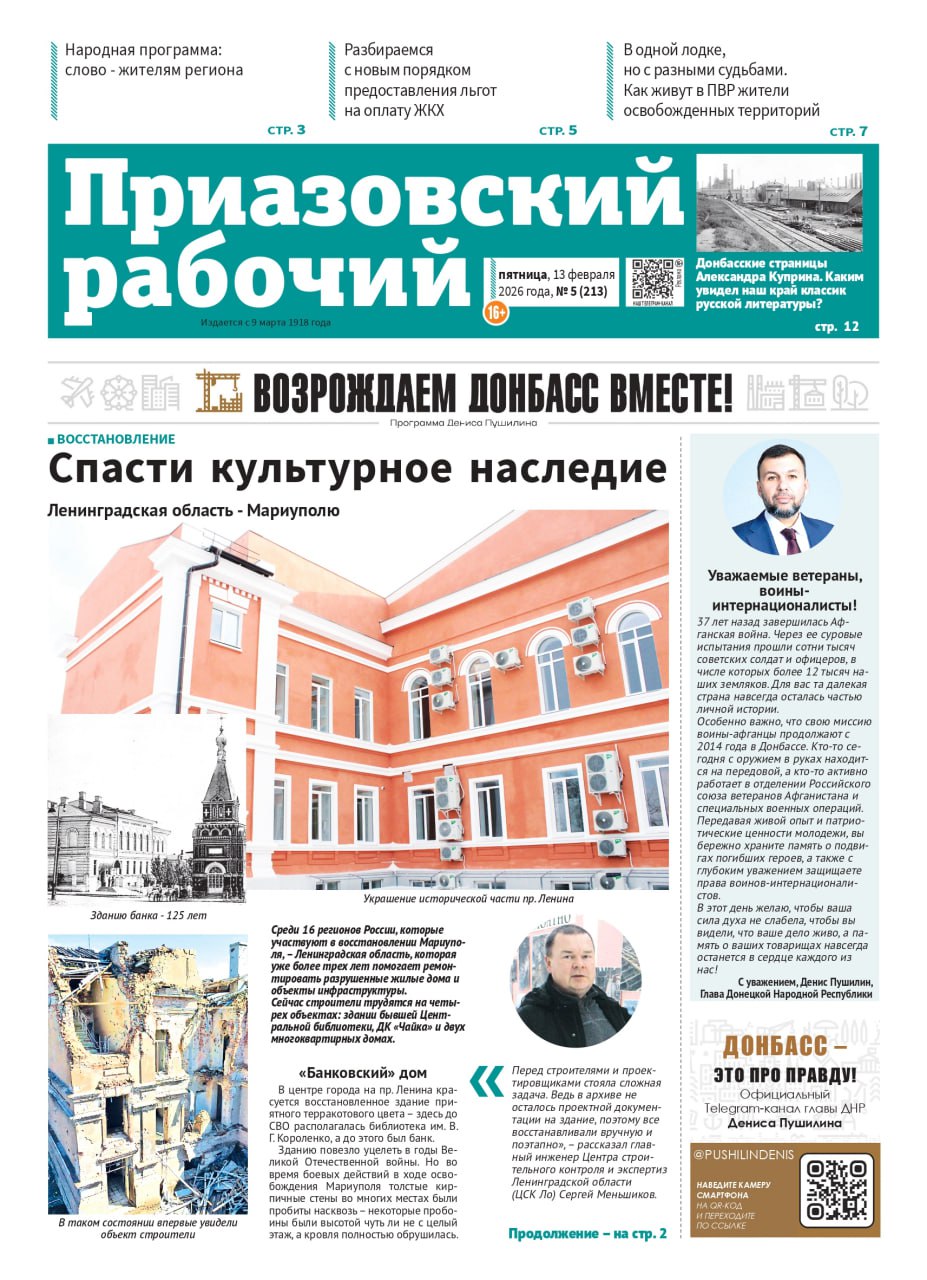 В сегодняшнем выпуске «Приазовского рабочего»: