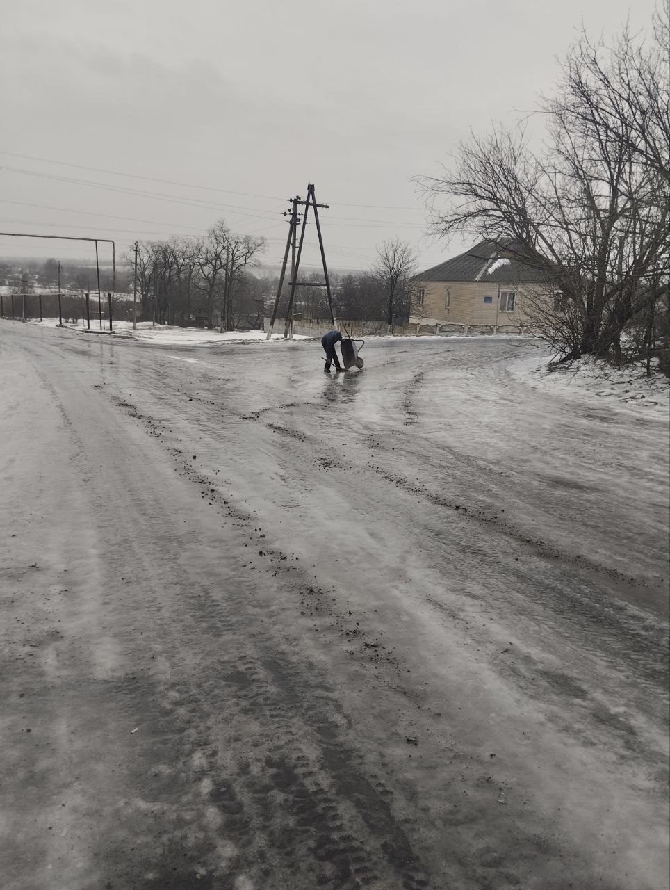 В Старобешевском муниципальном округе проходят работы по посыпке дорог, тротуаров и мест общественного пользования.