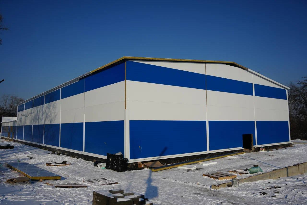 Площадь объекта составляет более 1 100 квадратных метров. В настоящее время завершается монтаж модульных конструкций, формируется тепловой контур, ведется подготовка к подключению к инженерным сетям. Благоустройство прилегающей территории запланировано на тёплый период года.