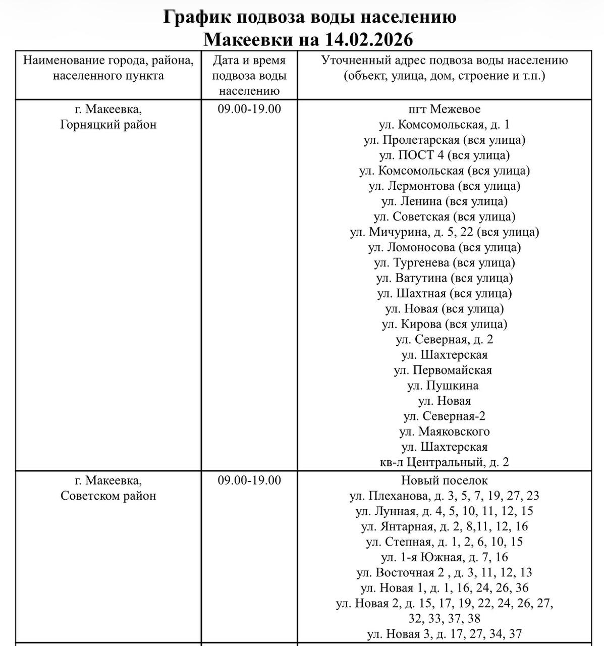 Завтра, 14 февраля, в Макеевке будет организован подвоз воды для жителей, в дома которых не поступила вода в установленный графиком день.