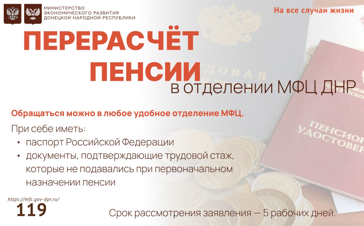 Перерасчет пенсии в МФЦ ДНР оказывается только при личном посещении заявителя в следующих случаях:
