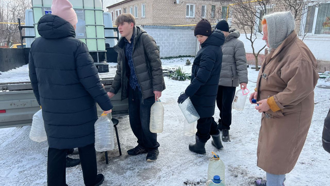 Администрация Шахтерского муниципального округа оперативно организовала подвоз воды жителям дома. Ребята из средней школы №2 вместе со своим учителем не только помогали набирать воду, но и доносили в квартиры, помогая маломобильным гражданам.