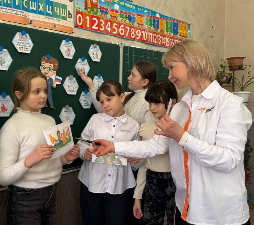 Советники директоров по воспитанию вместе с младшими школьниками провели игру-пантомиму «Ожившие пословицы». Ребята разделились на команды и получили карточки с известными пословицами и поговорками. С помощью жестов и мимики каждая команда объяснила смысл выражения, а участники отгадывали их.