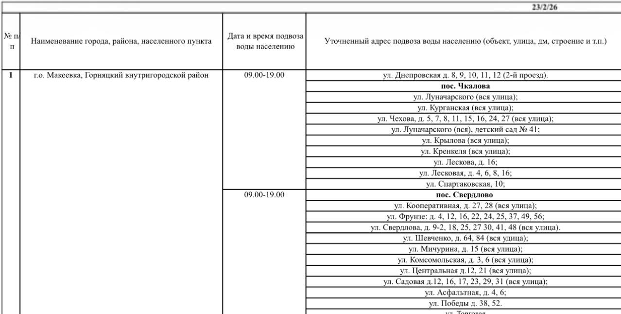 Завтра, 23 февраля, в Макеевке будет организован подвоз воды для жителей, в дома которых не поступила вода в установленный графиком день.