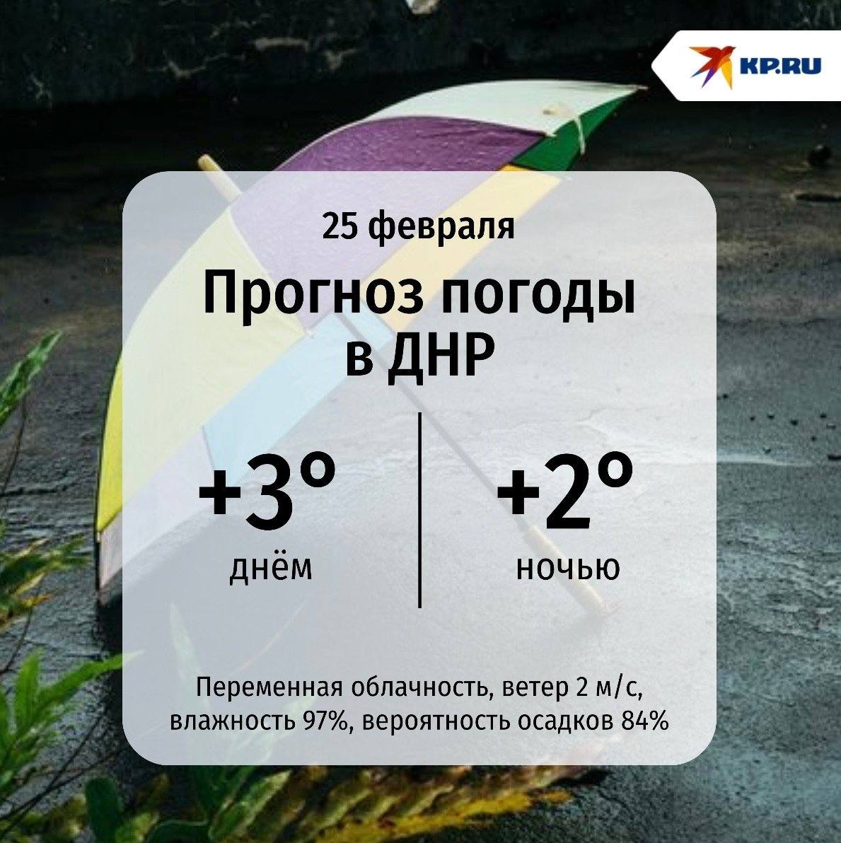 В ДНР сегодня нас ждёт задумчивый денёк: небо будет хмуриться, на улице зябко. С 15:00 до 23:00 возможны осадки, так что одевайтесь теплее и не забудьте зонтик.