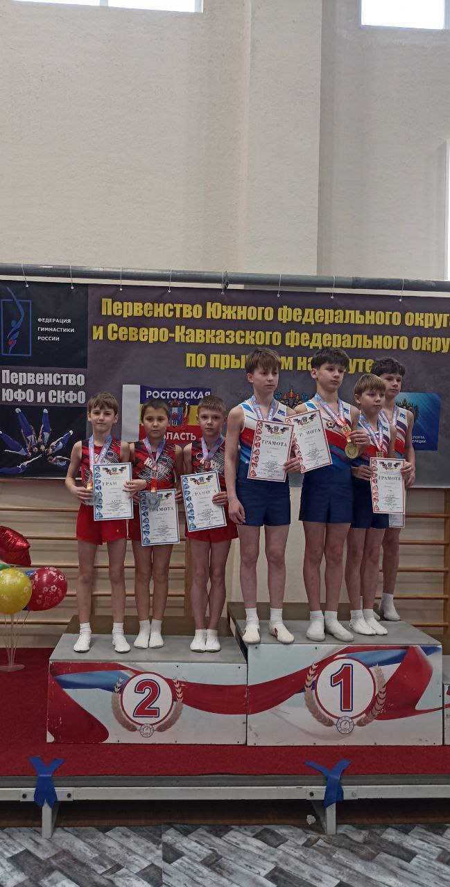 среди командных соревнований среди юношей место заняла команда ДНР в составе: Коротич Артур, Кошелев Илья, Емельянов Никита! Но расслабляться рано, завтра финал прыжков на батуте среди юношей 13-14 лет и двойной мини трамп!