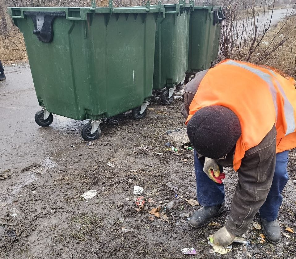 Сегодня, 26 февраля, с целью приведения территории в надлежащее санитарное состояние проведены работы по уборке контейнерной площадки по ул. Грузской.