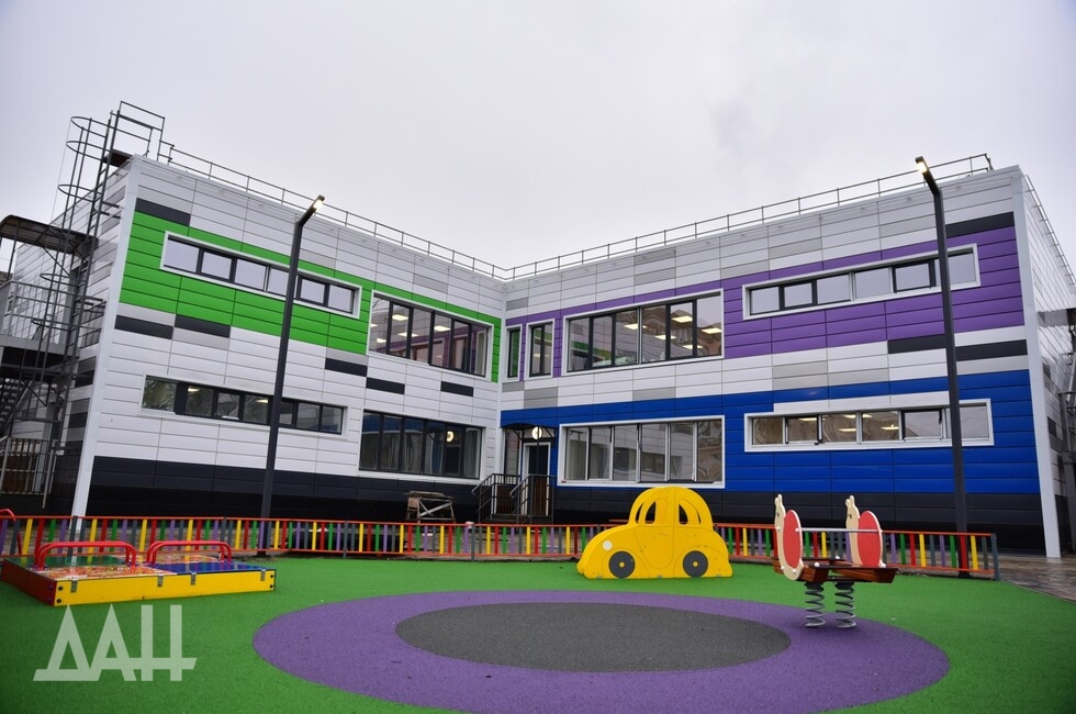 В рамках реализации программы «Единой России» видна большая забота о подрастающем поколении. Для них с 2022 года в Макеевке возведено 11 детских и 7 спортивных площадок, включая открытый осенью 2024-го центр уличного баскетбола. Обновляют школы и детские сады. На фото — настоящий островок мечты в виде садика в микрорайоне Солнечный. Здание выполнено в ярких тонах, на территории большое количество качелей, горок и теремков. Всё современное и функциональное, а главное — новое. Ремонт еще не закончен, но родители уже стремятся определить туда своих чад.