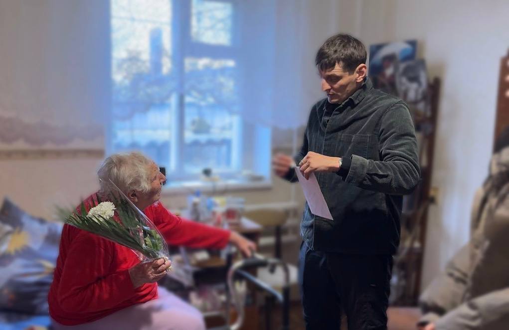 В рамках проекта «Старшее поколение» в гости к Варваре Григорьевне Возиановой— участнице Великой Отечественной войны, отметившей своё 95-летие, пришли активист Мелекинского первичного отделения партии «Единая Россия», заведующий сектором молодёжной политики Администрации Мангушского муниципального округа Руслан Александрович Пономаренко, активная молодёжь и представители общественной организации "Народная Дружина".