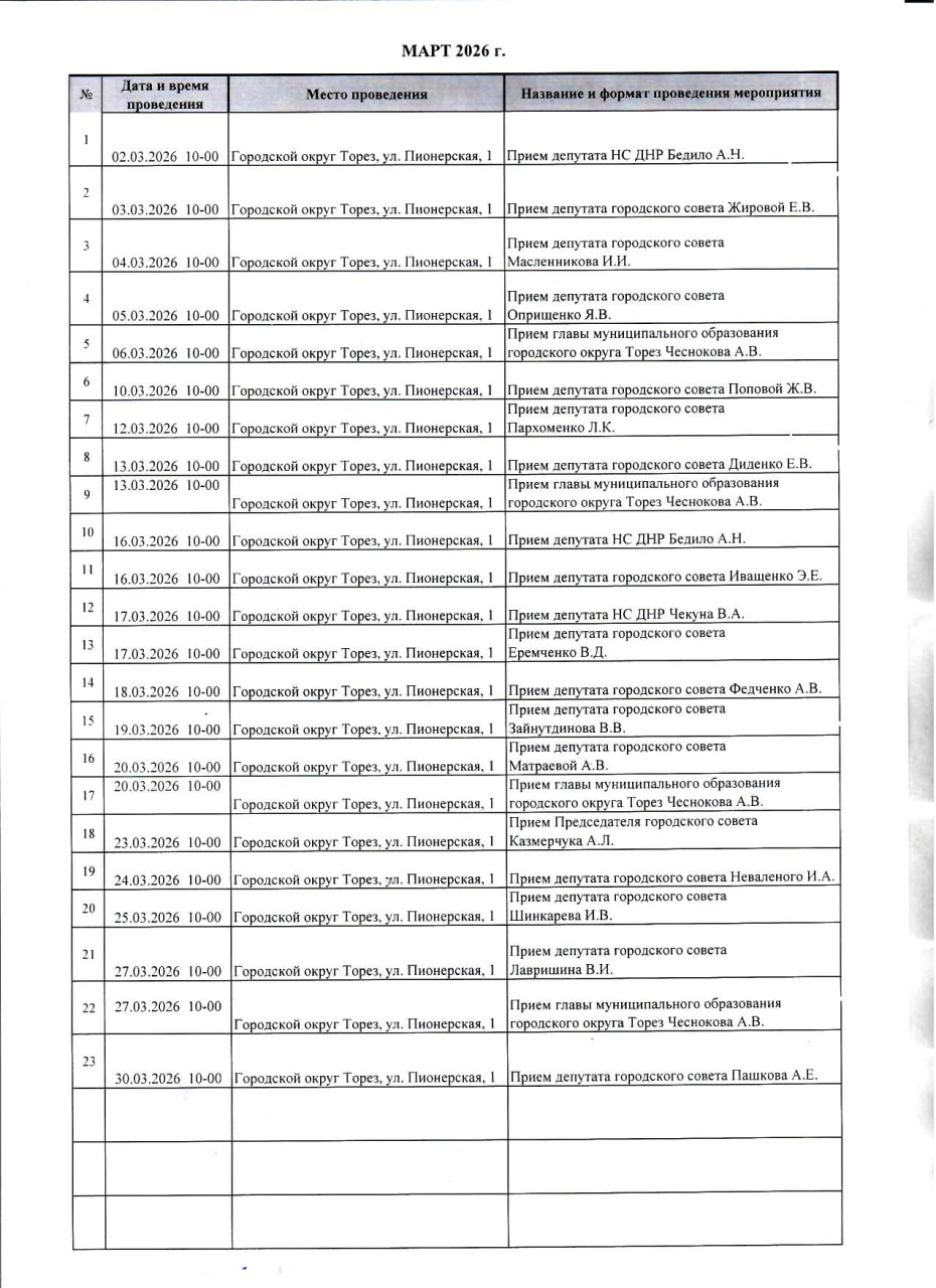 ГРАФИК ПРИЕМОВ В МАРТЕ 2026г