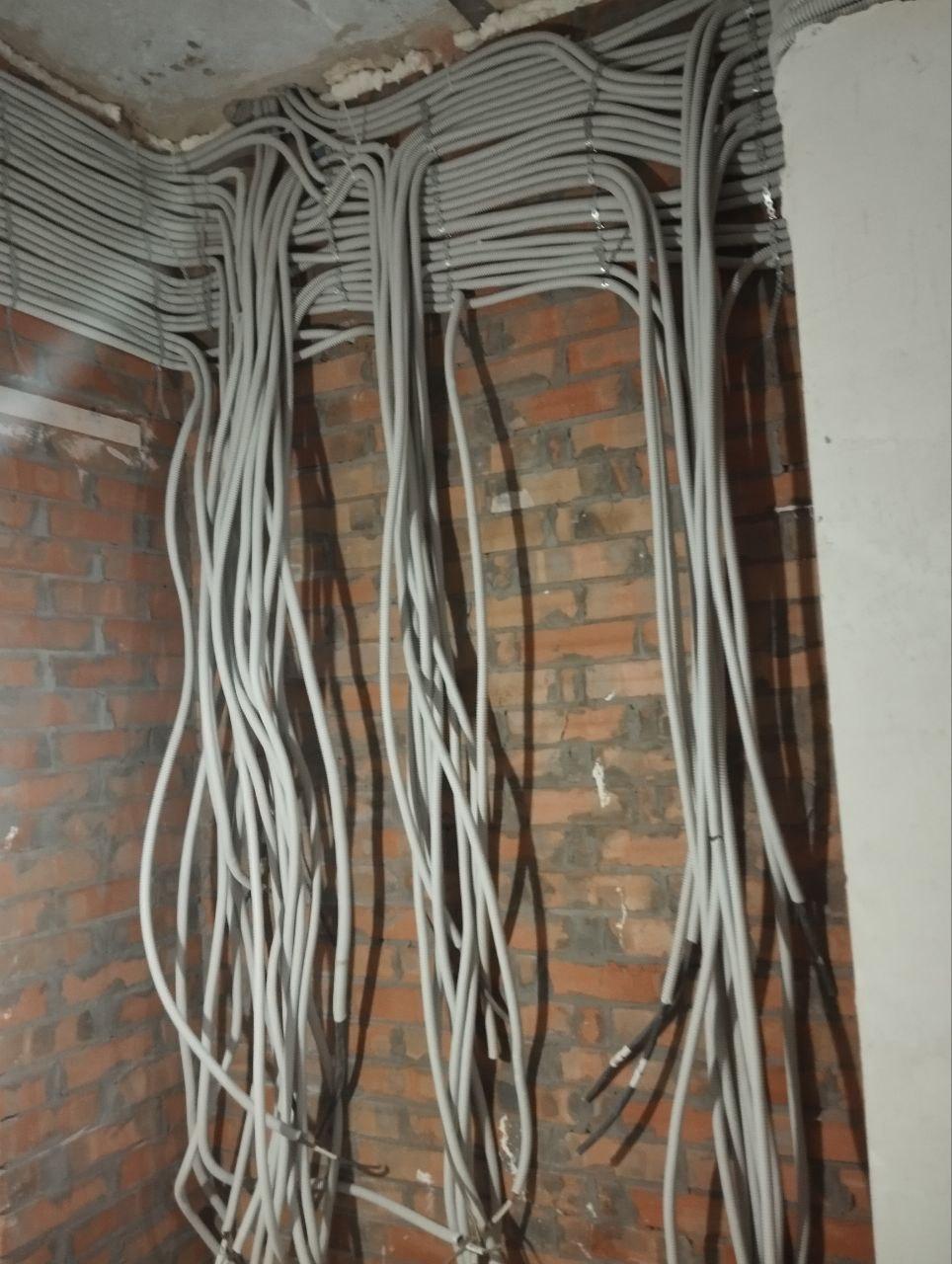 Продолжаются работы по прокладке слаботочных систем и новой электрической проводки. Рабочие провели разгрузку необходимых строительных материалов для дальнейших производственных работ.