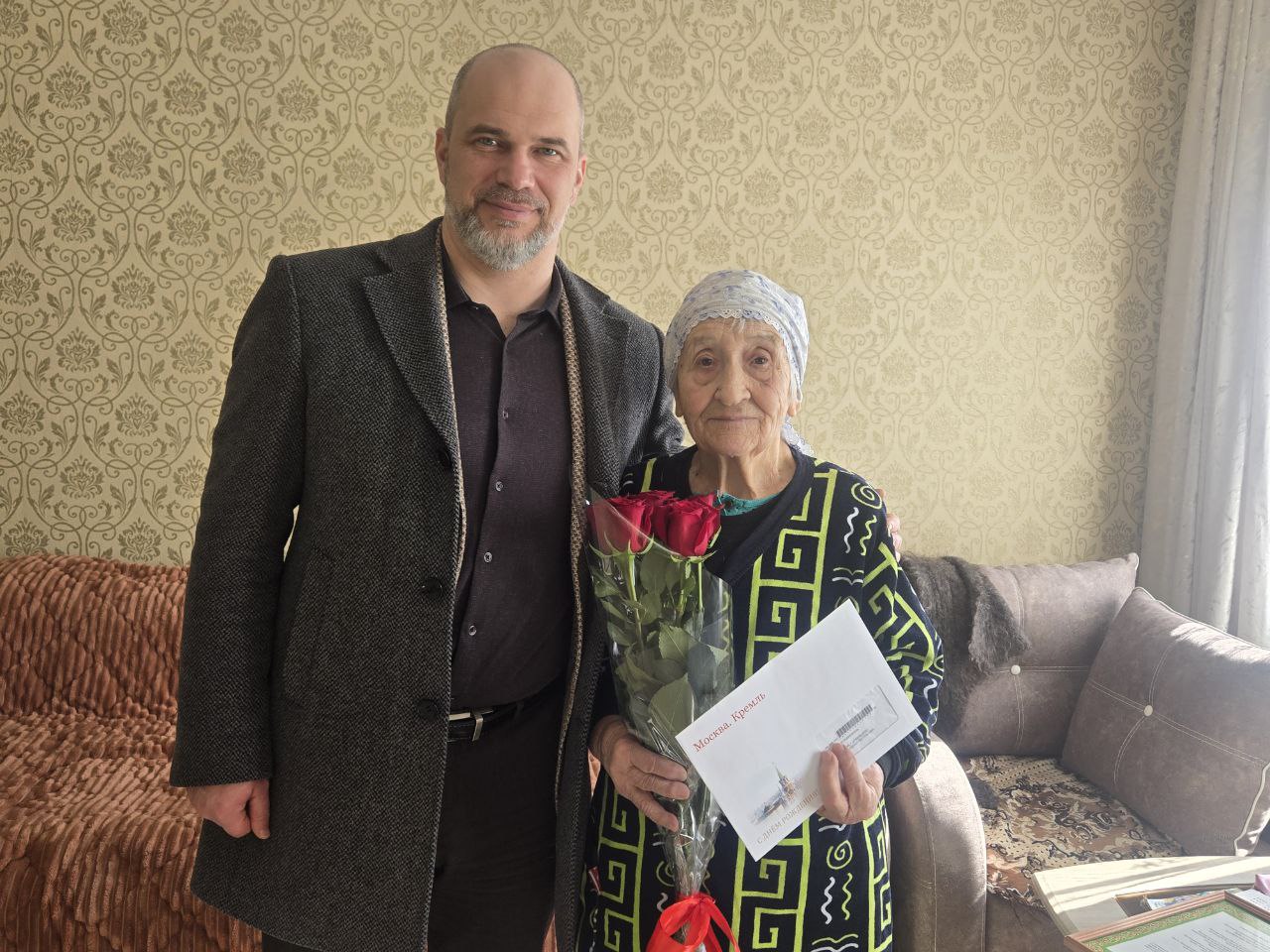 Сергей Викторович пожелал имениннице еще долгих лет жизни, мирного неба, здоровья, заботы родных и близких людей и вручил поздравительное письмо от Президента Российской Федерации Владимира Владимировича Путина.
