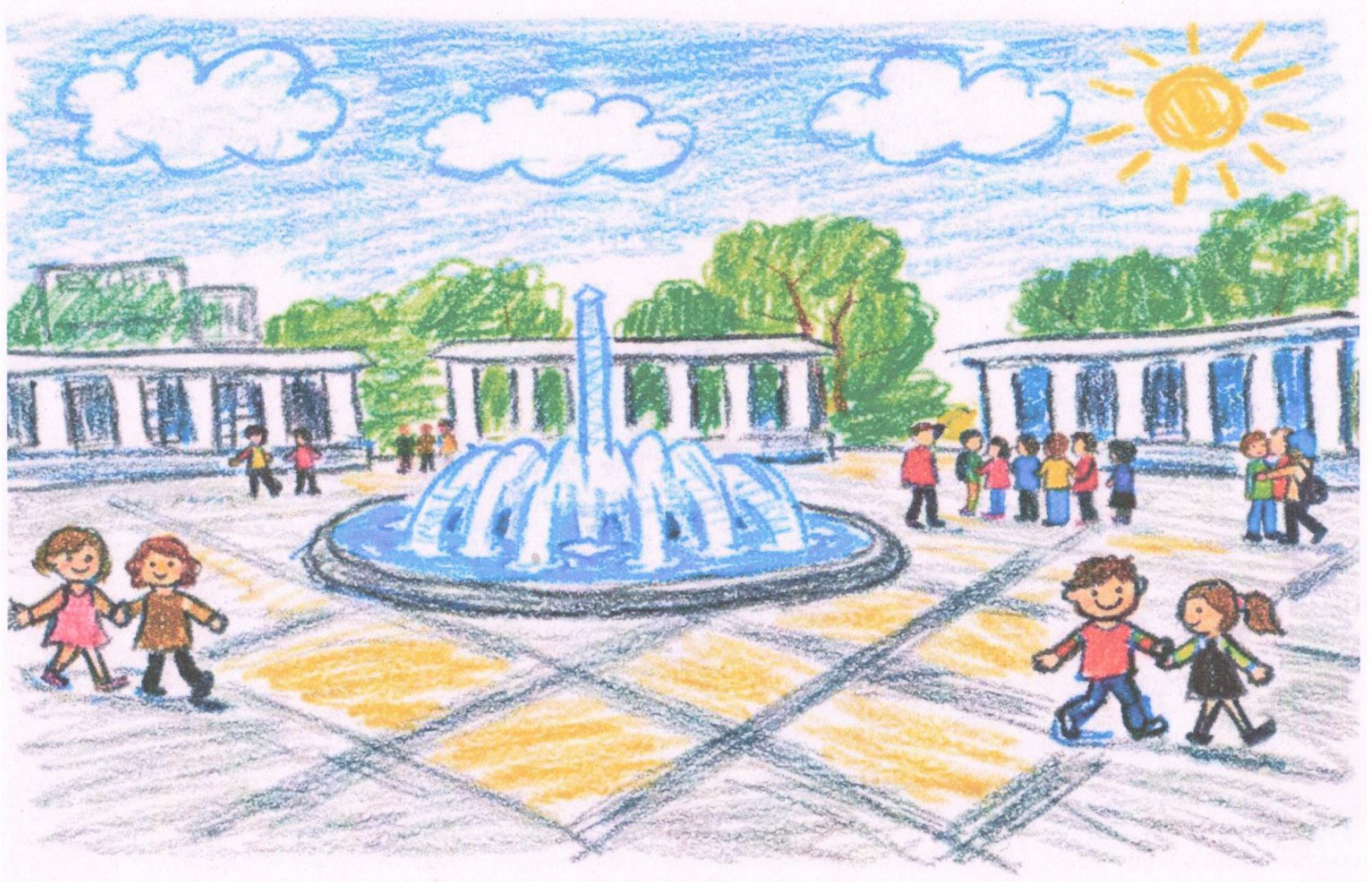 Центральная площадь Волновахи стала главным объектом вдохновения для молодых творцов. В их воображении она превратилась в пространство, где каждый найдёт занятие по душе: