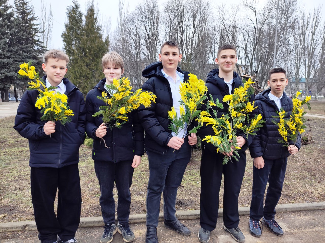 В мероприятии приняли участие учащиеся школы № 150. Ребята поздравляли наших милых женщин с прекрасным весенним праздником и дарили ярко-желтые веточки мимозы, как символ весны, красоты, нежности и женственности.