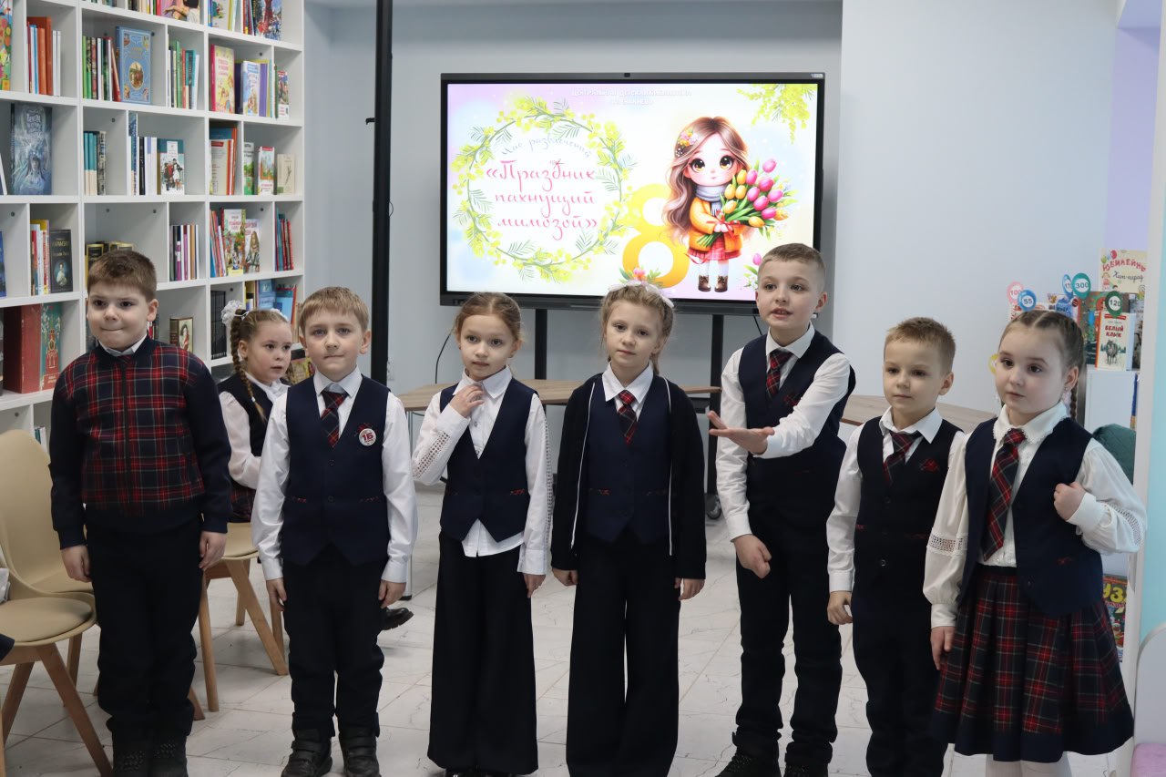 В начале мероприятия мальчики поздравили своих одноклассниц с наступающим праздником и зачитали им прекрасные стихи. А затем сотрудники библиотеки пригласили ребят поучаствовать в викторинах«Что подарим нашей маме?», «Сказочные девочки и мамули в литературе», «Найди цифру восемь».В играх«Веселые поварята», «Юные помощники», «Золушка» дети показали, как они помогают своим мамам и бабушкам дома. Час развлечений прошел в атмосфере добра и беззаботности и зарядил праздничным настроением всех присутствующих.