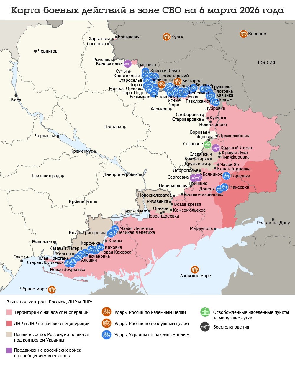 Карта боевых действий в зоне СВО на 6 марта 2026 года