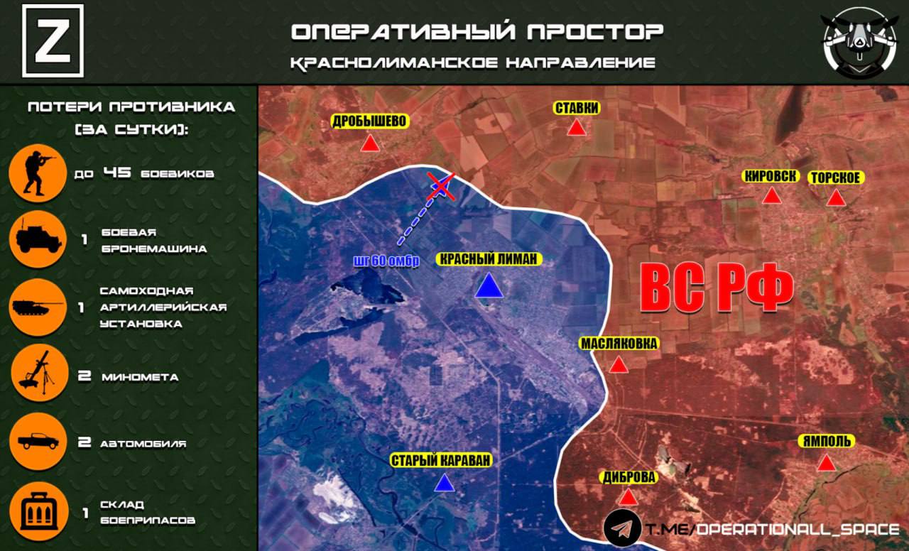 На Краснолиманском направлении ВС РФ ведут бои в окрестностях города Красный Лиман