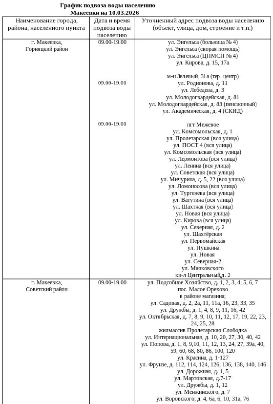 Сегодня, 10 марта, в Макеевке будет организован подвоз воды для жителей, в дома которых не поступила вода в установленный графиком день.