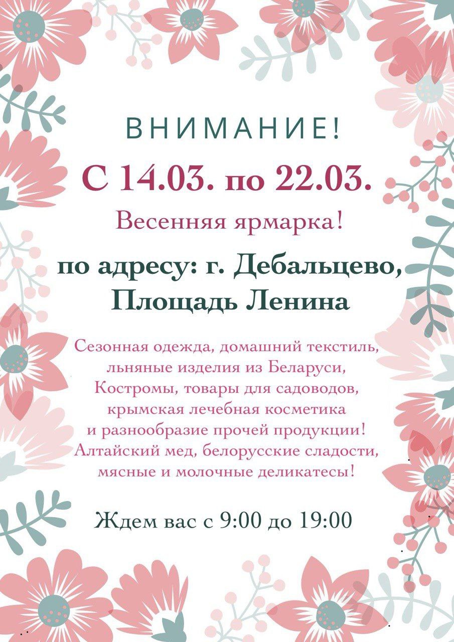 Состоится первая весенняя ярмарка по адресу; г. Дебальцево, Площадь Ленина!