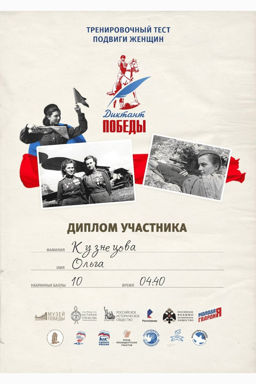 "Диктант Победы" напоминает о тренировочном тесте для подготовки к «Диктанту Победы», посвященный подвигу женщин в Великой Отечественной.