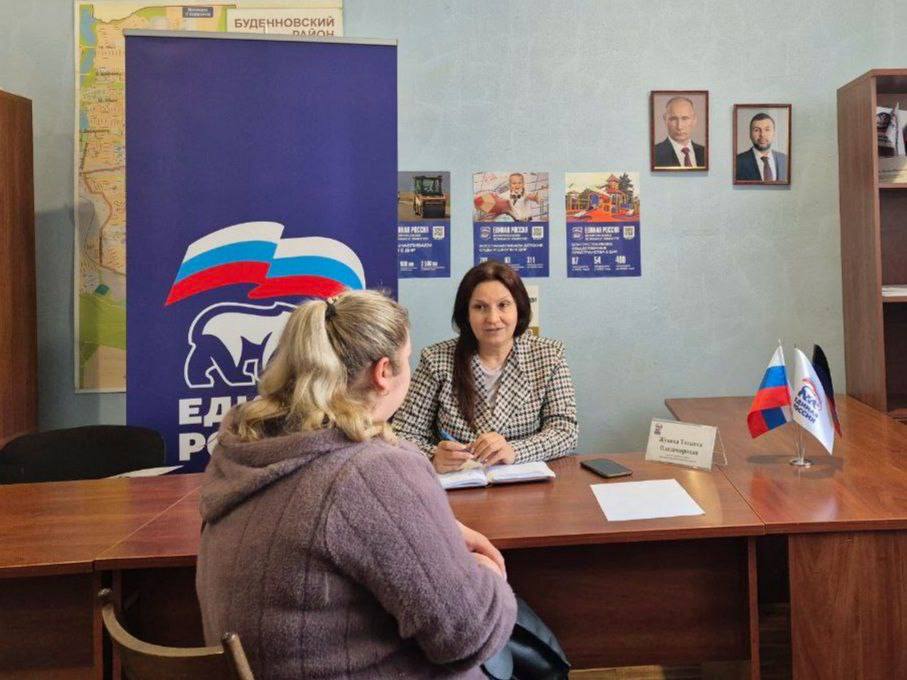 Сегодня в общественной приемной Партии «Единая Россия» Буденновского района состоялся прием граждан, который провела депутат Донецкого городского совета Жукова Татьяна Владимировна.