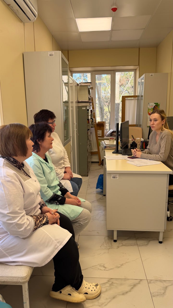 Сегодня депутат Тельмановского муниципального совета Юлия Линник встретилась с сотрудниками ГБУ ДНР «Центральная районная больница Тельмановского района».
