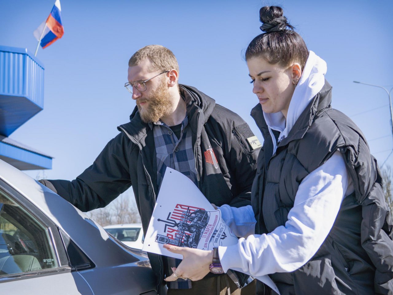 Дружинники в рамках нацпроекта «Молодежь и дети» вручили автомобилистам наклейки в честь Дня освобождения Волновахи