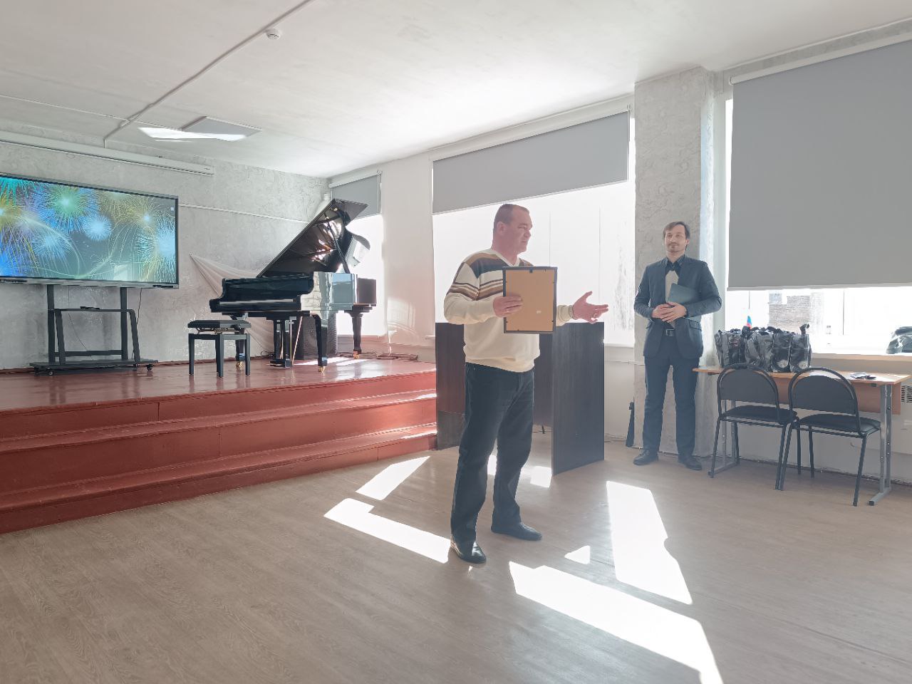 На сцене Детской школы искусств для работников ЖКХ звучали музыкальные композиции от преподавателей и учеников школы.