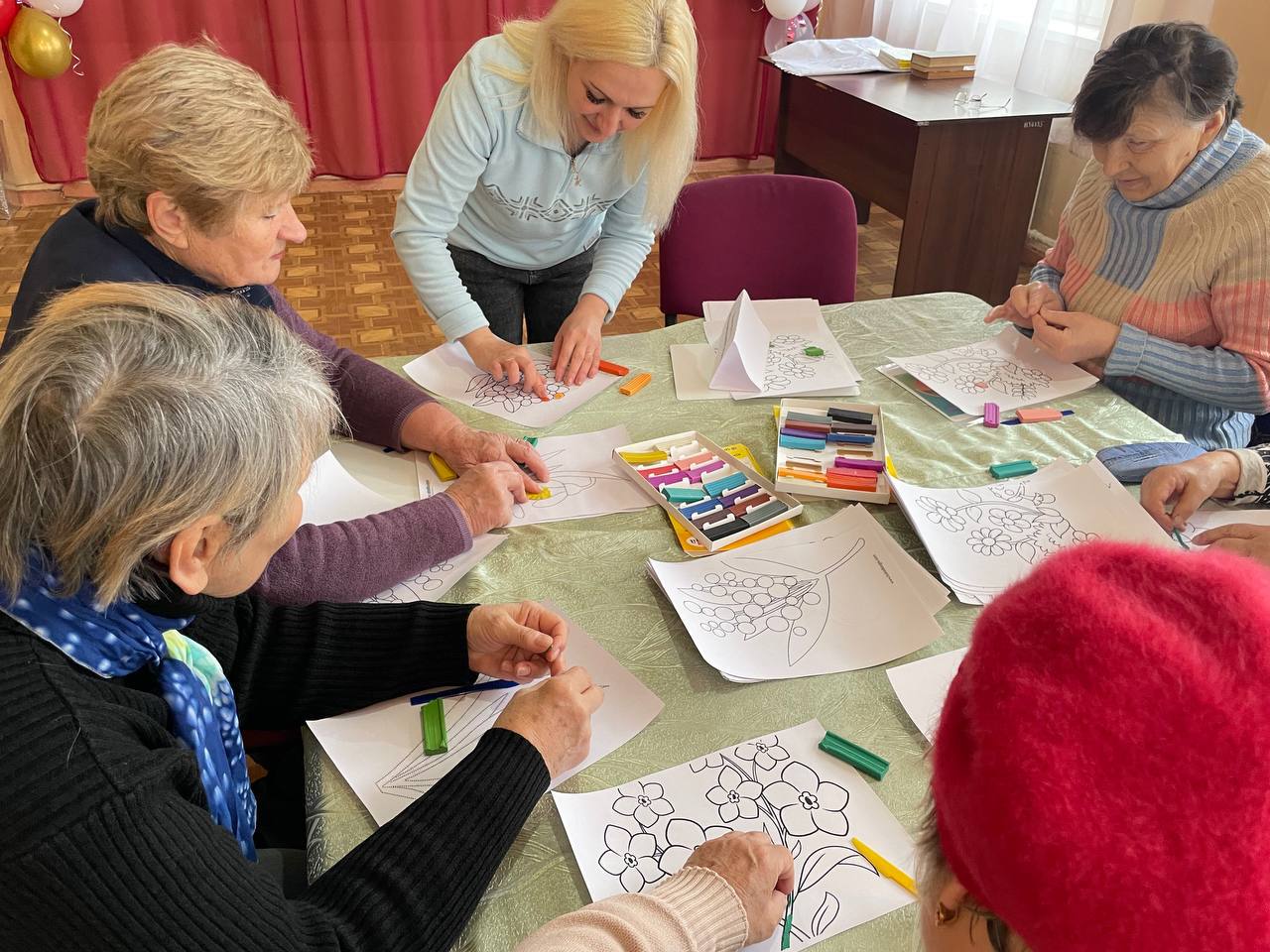 После небольшой разминки участники внимательно прослушали информацию о пластилинографии. Пластилинография - это создание рисунка на бумаге или картоне. Занятие с пластилином - это не только создание красочных картин, но и полноценное терапевтическое направление, особенно эффективное для пожилых людей. Погружаясь в увлекательный процесс, пожилые люди учатся выражать чувства, эмоции, настроение через творчество. Некоторые из наших подопечных во время работы с пластилином впервые открыли в себе творческий потенциал. У всех получателей социальных услуг получились очень красивые, яркие, весенние картины.