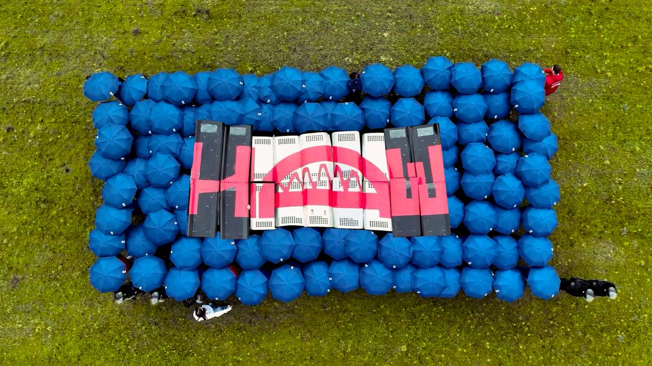 Активисты выстроились с щитами, образуя слово «НАШ». Таким образом они выразили общую позицию: Крым навсегда с Россией. Вокруг этой надписи были раскрыты синие зонты, олицетворяющие воды Чёрного и Азовского морей.
